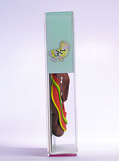 Escultura de massa polímera de PVC em caixa de acrílico adesivado.