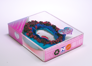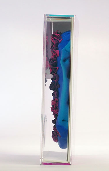 em caixa de acrílico adesivado