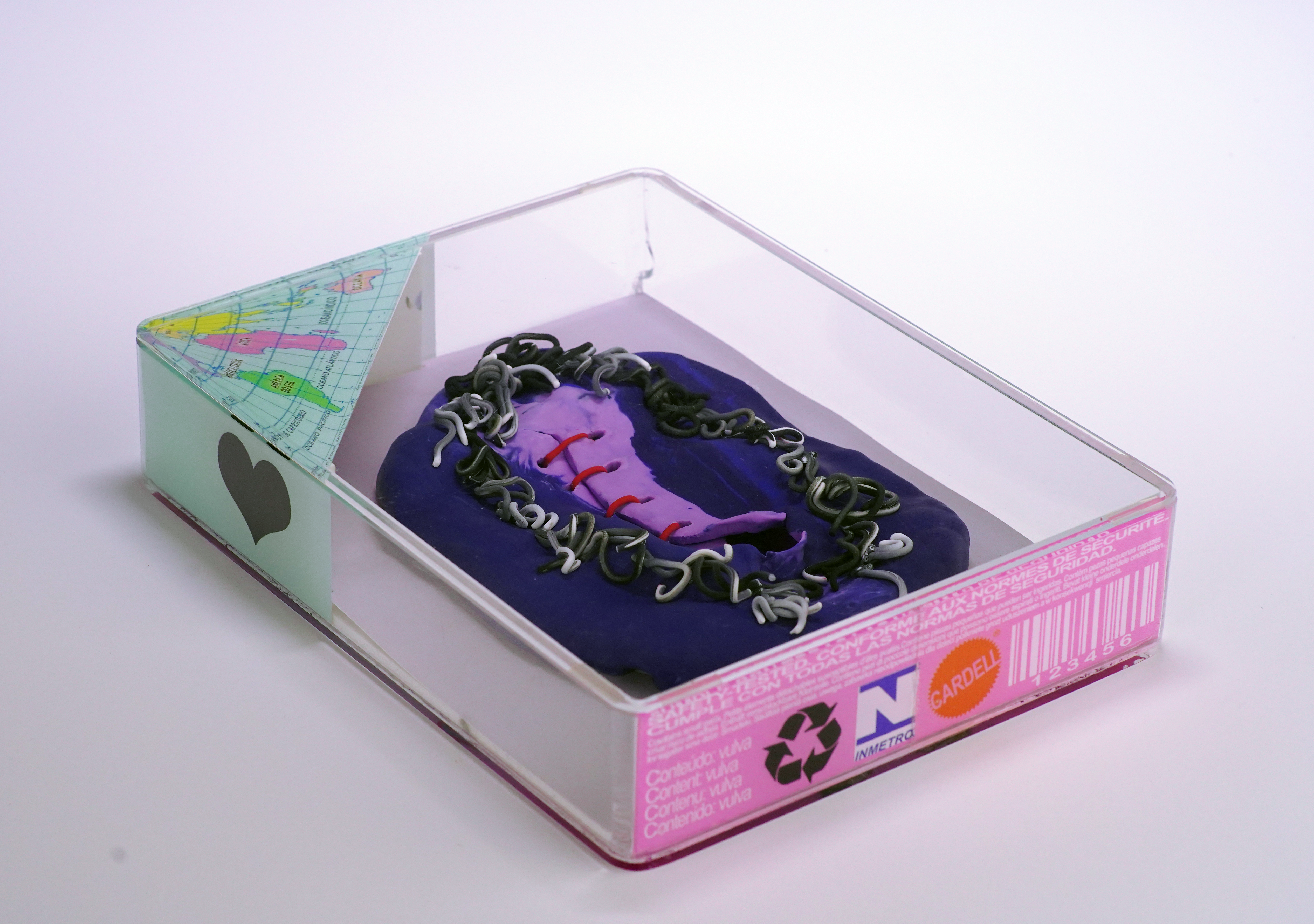 Escultura de massa polímera de PVC em caixa de acrílico adesivado.