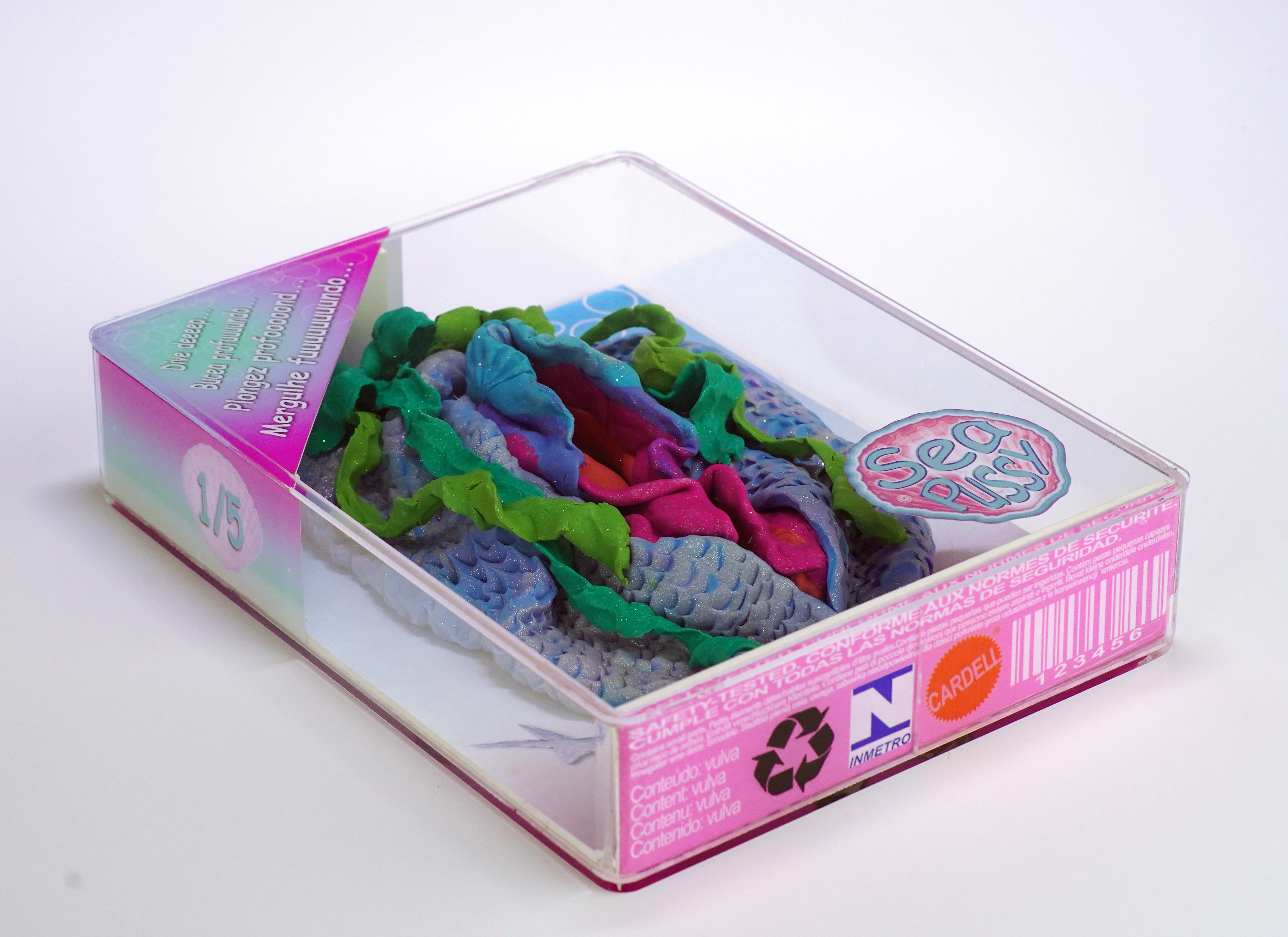 Escultura de massa polímera de PVC em caixa de acrílico adesivado.
